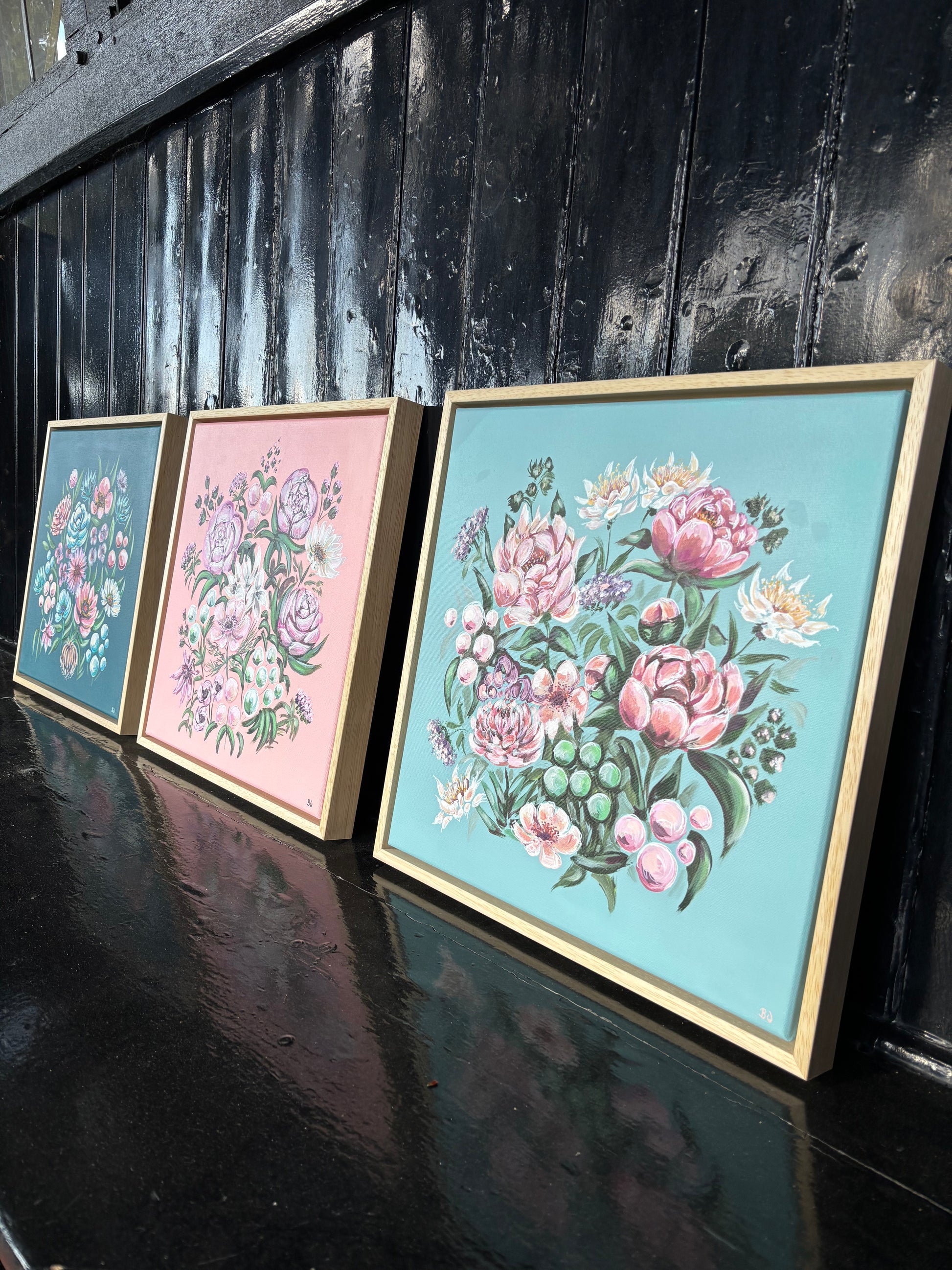 Framed in a barefaced pine floater frame it is elegant and contemporary at the same time. Pair it with one or both of the other two in this trio to make a stunning set.