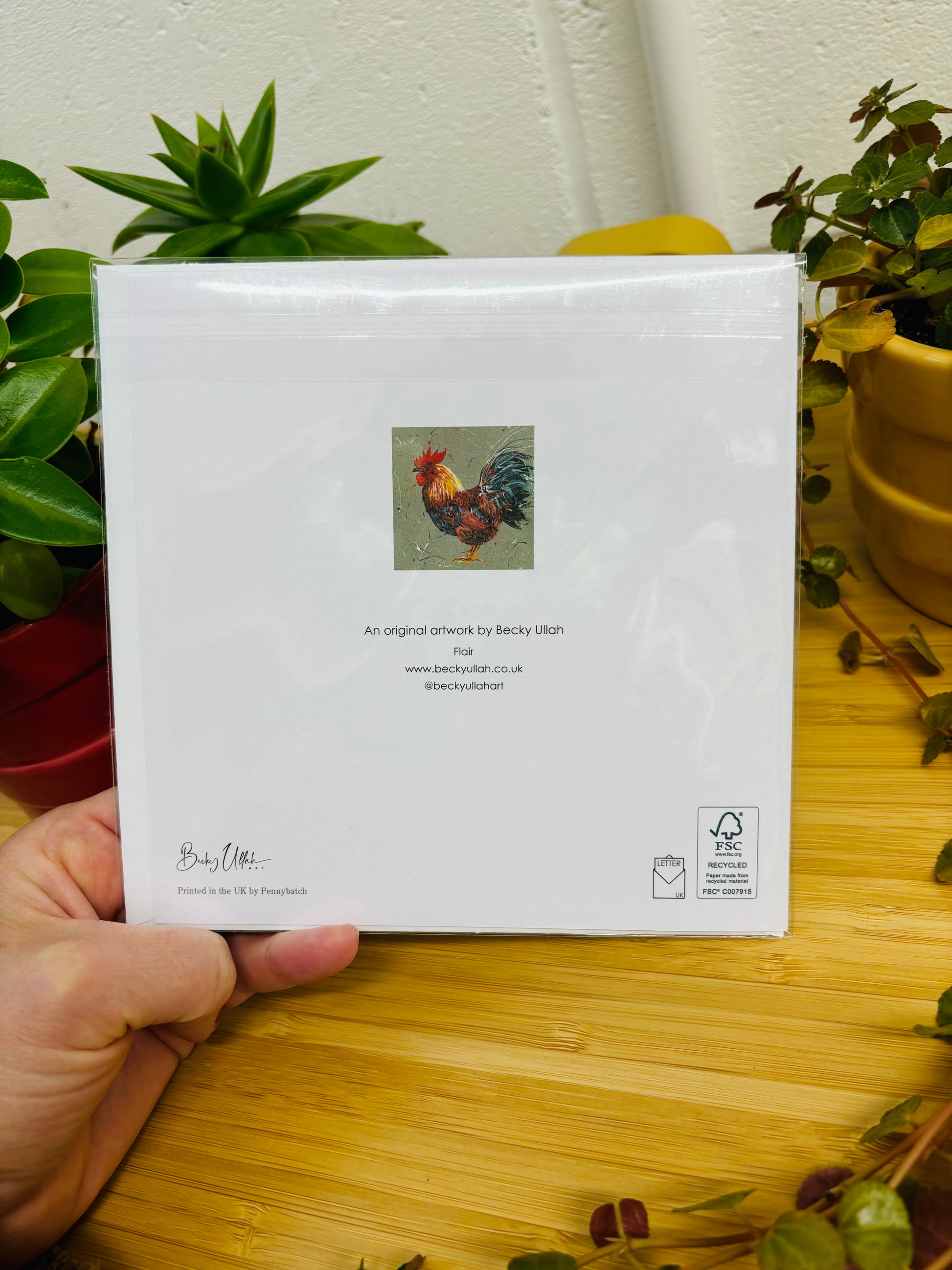 For all the cockerel lovers out there! This square greetings card measures 150 x 150mm and is printed on 100% Recycled Matt Paper FSC2 with an accompanying high quality white envelope.