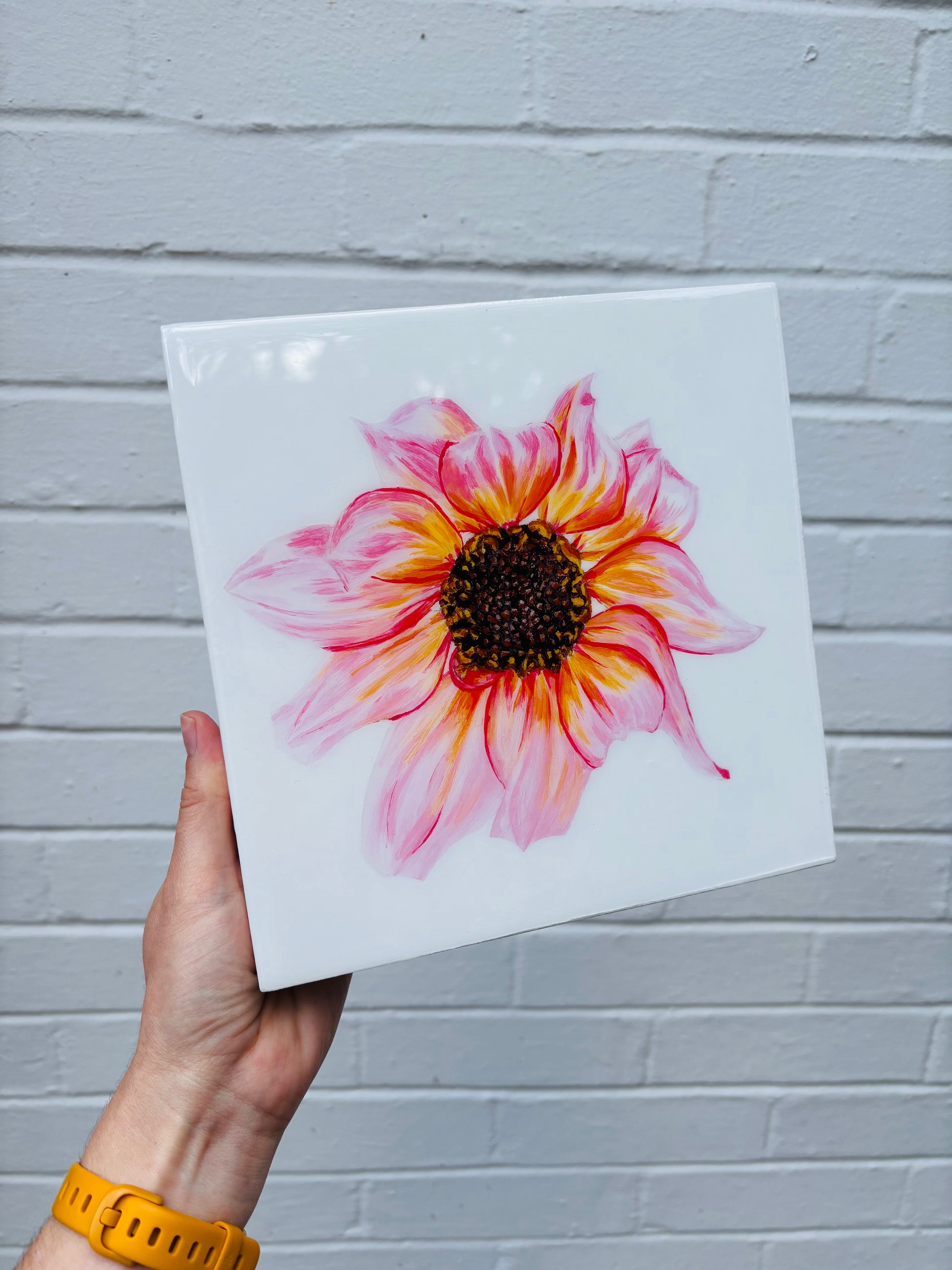 Acrylic on a 20x20cm panel with resin. Comes ready to hang with hanging cord on the back.