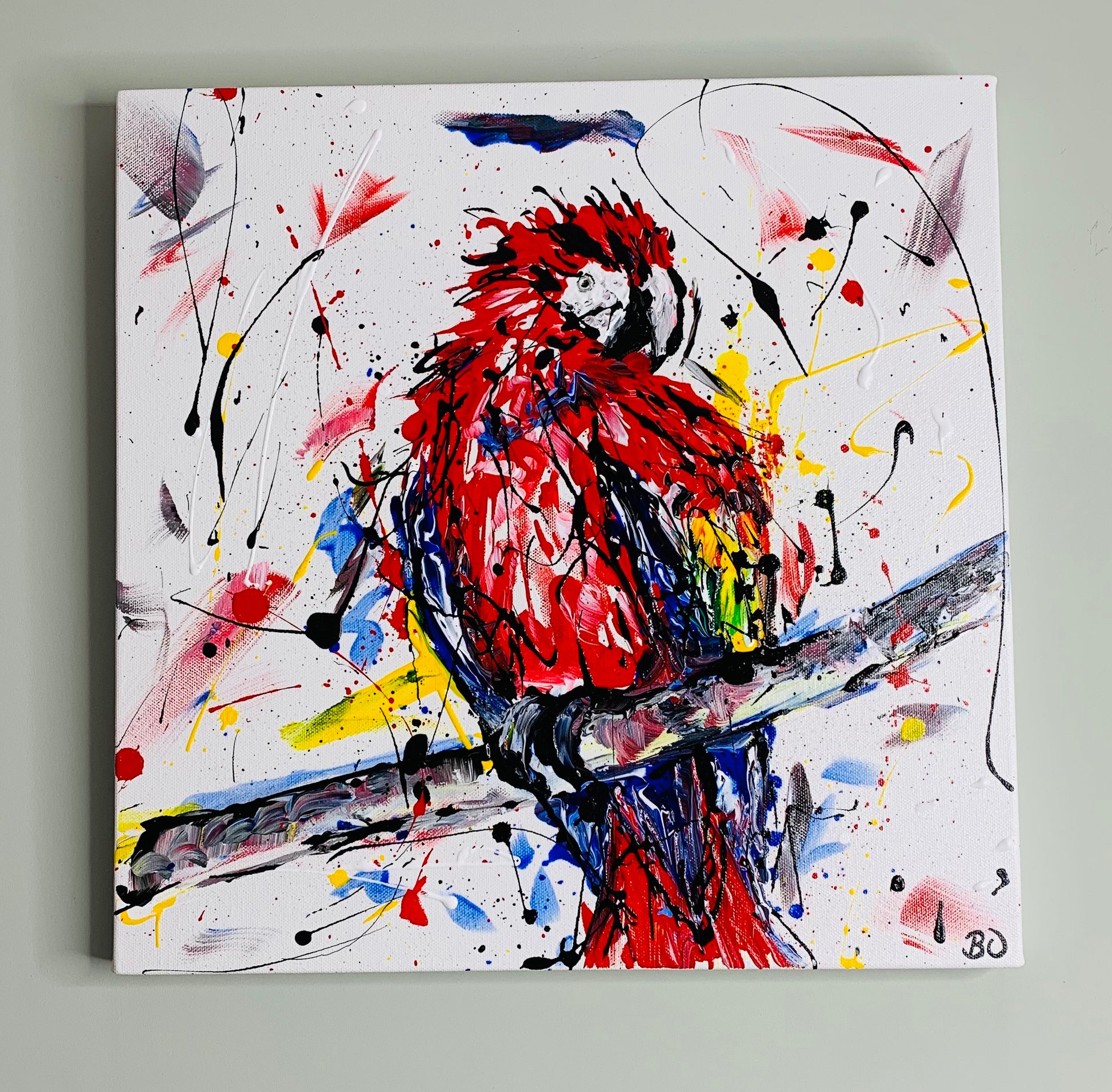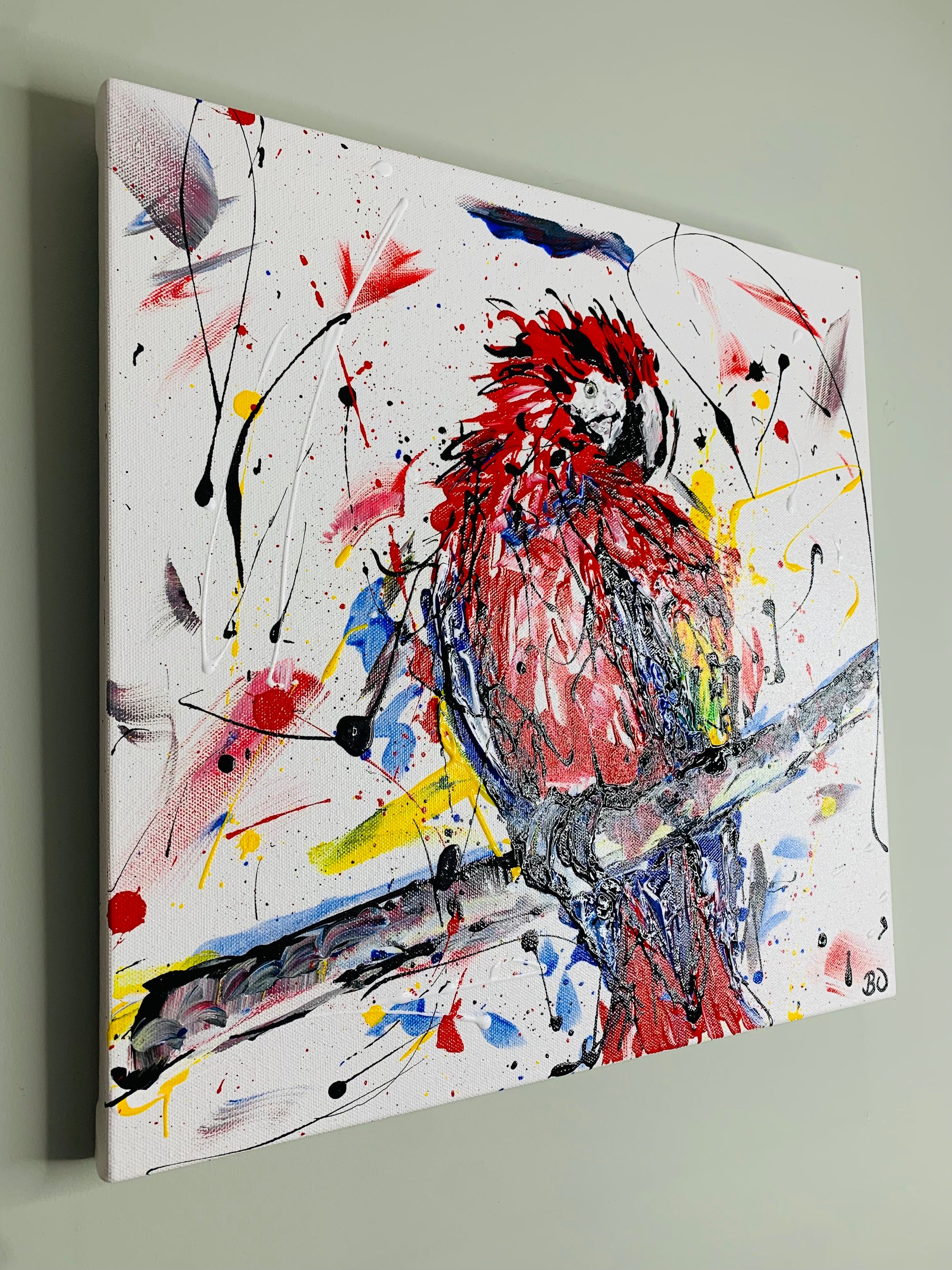 The artwork is acrylic on stretched canvas which measures 40 x 40 cm and 20mm deep. It arrives unframed with hanging-cord, ready to hang on your wall.