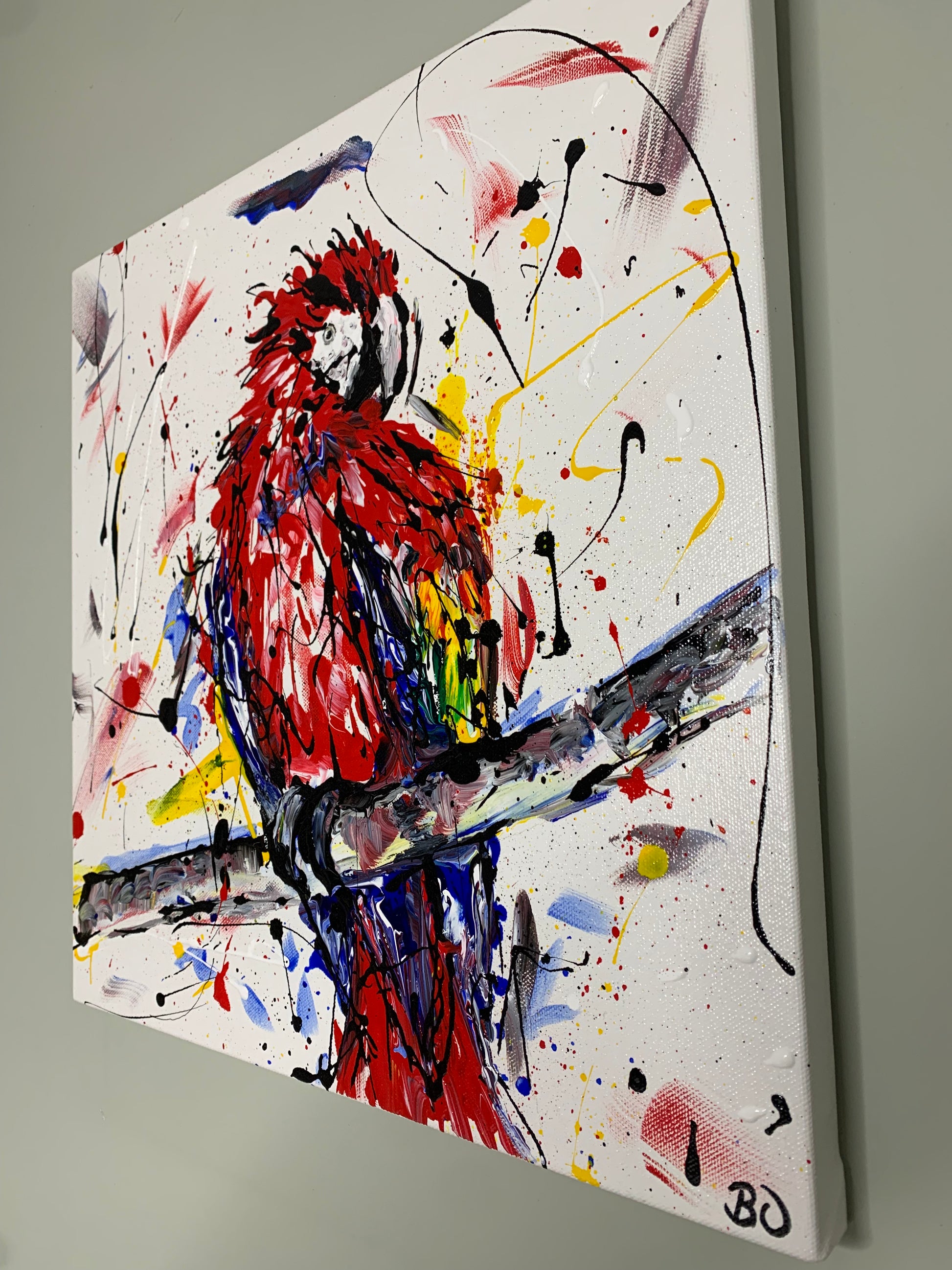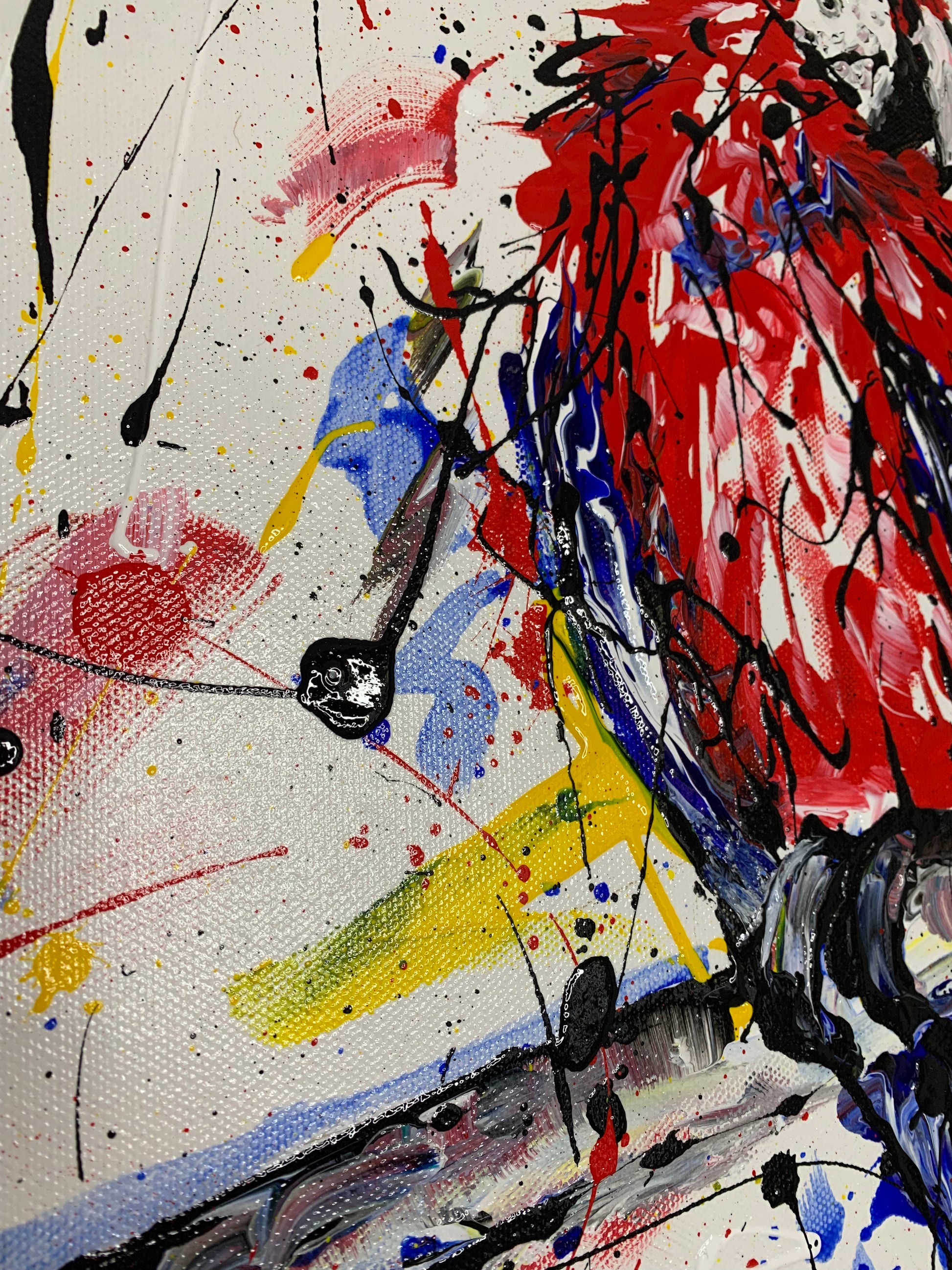 This lively drip-painting is full of life, energy and colour. A thick underpainting is in bold primaries is over-laid with loose glossy drips bringing layers of texture and interest.