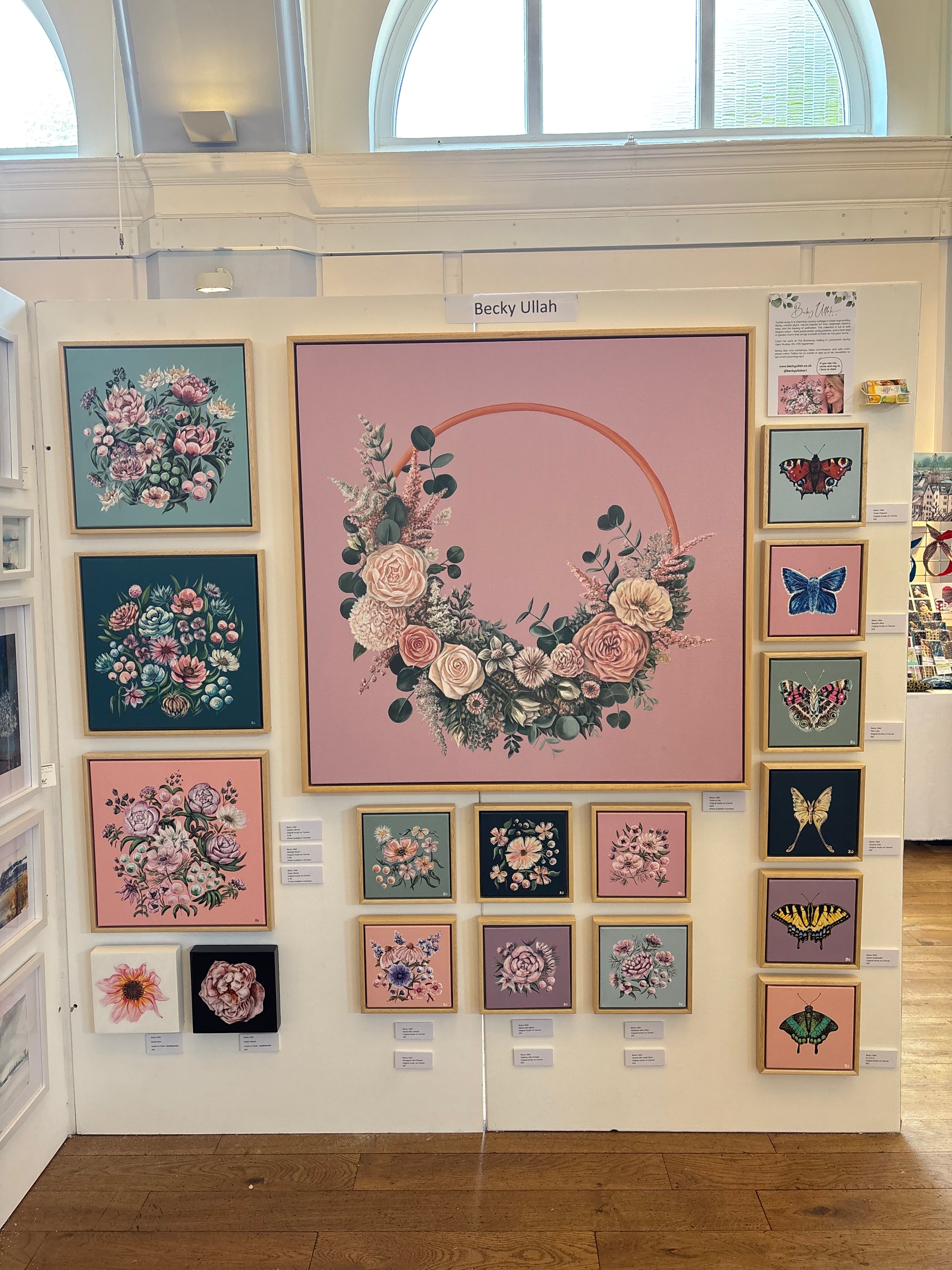 Acrylic on a 20x20cm canvas. Diameter 23cm. Comes framed and ready to hang with hanging cord on the back.