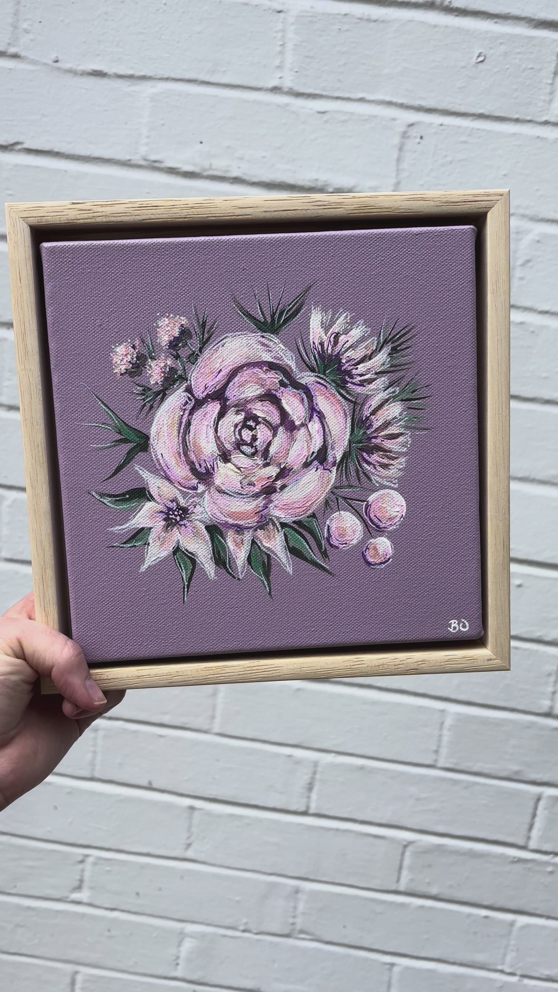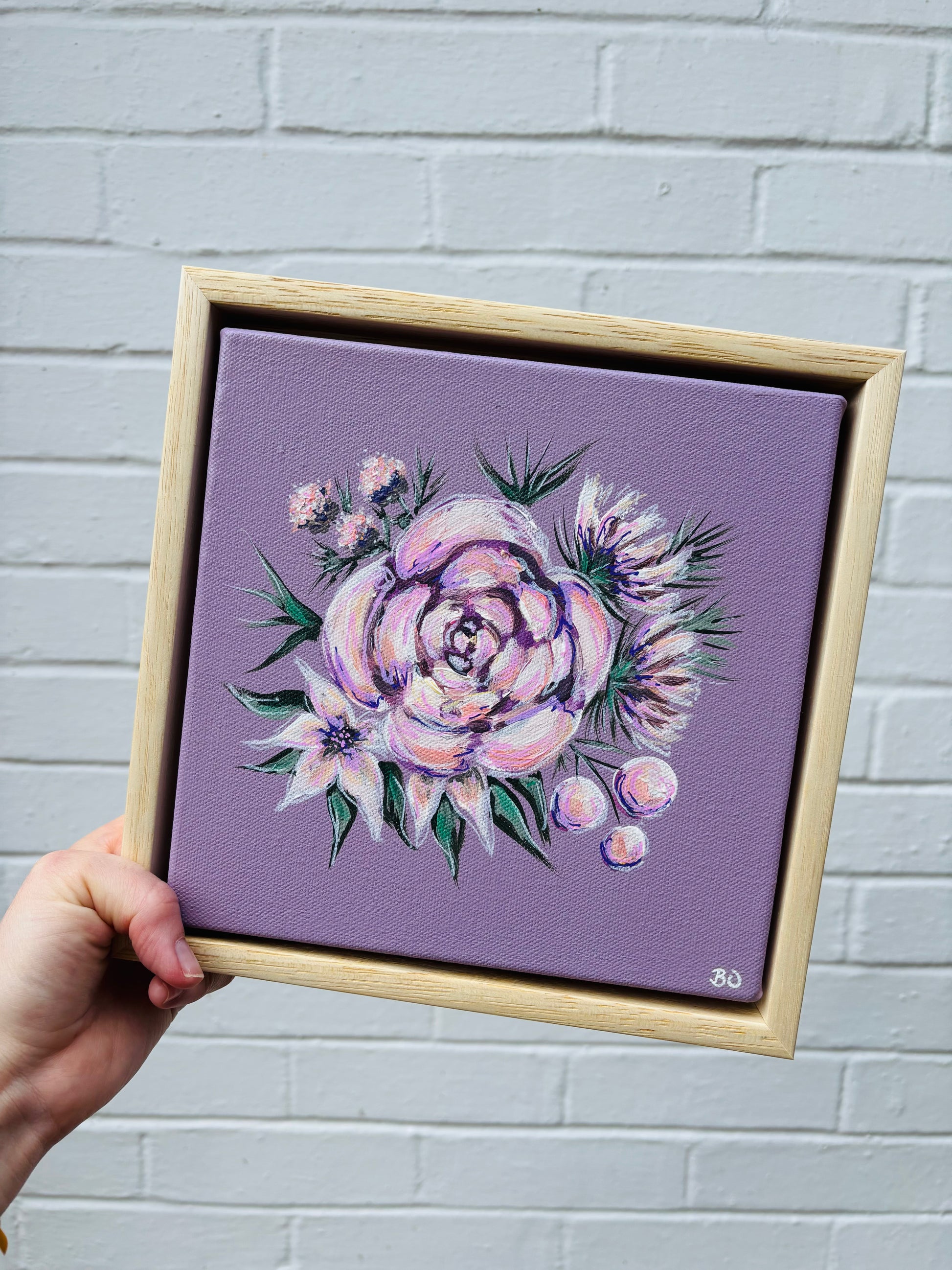 This sumptuous peony takes centre stage on this tiny canvas. Framed in a barefaced pine floater frame it is elegant and contemporary at the same time. Pair it with some of the other pastel minis to make a stunning set.