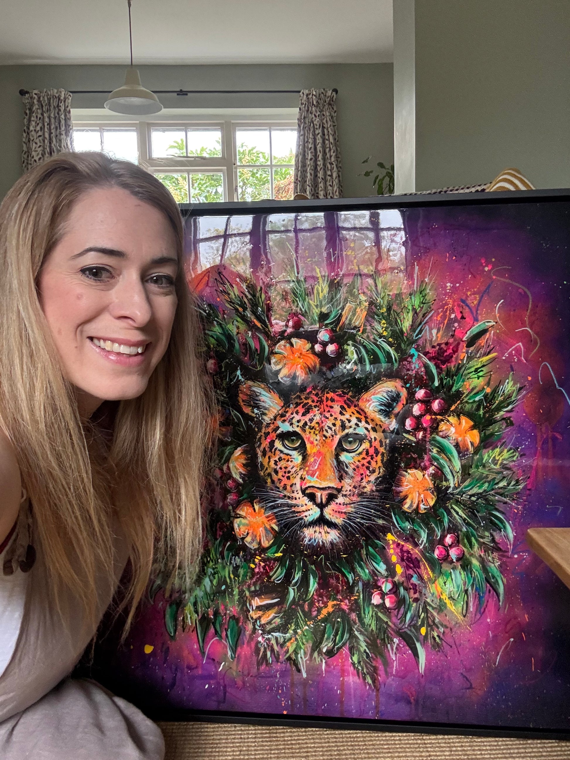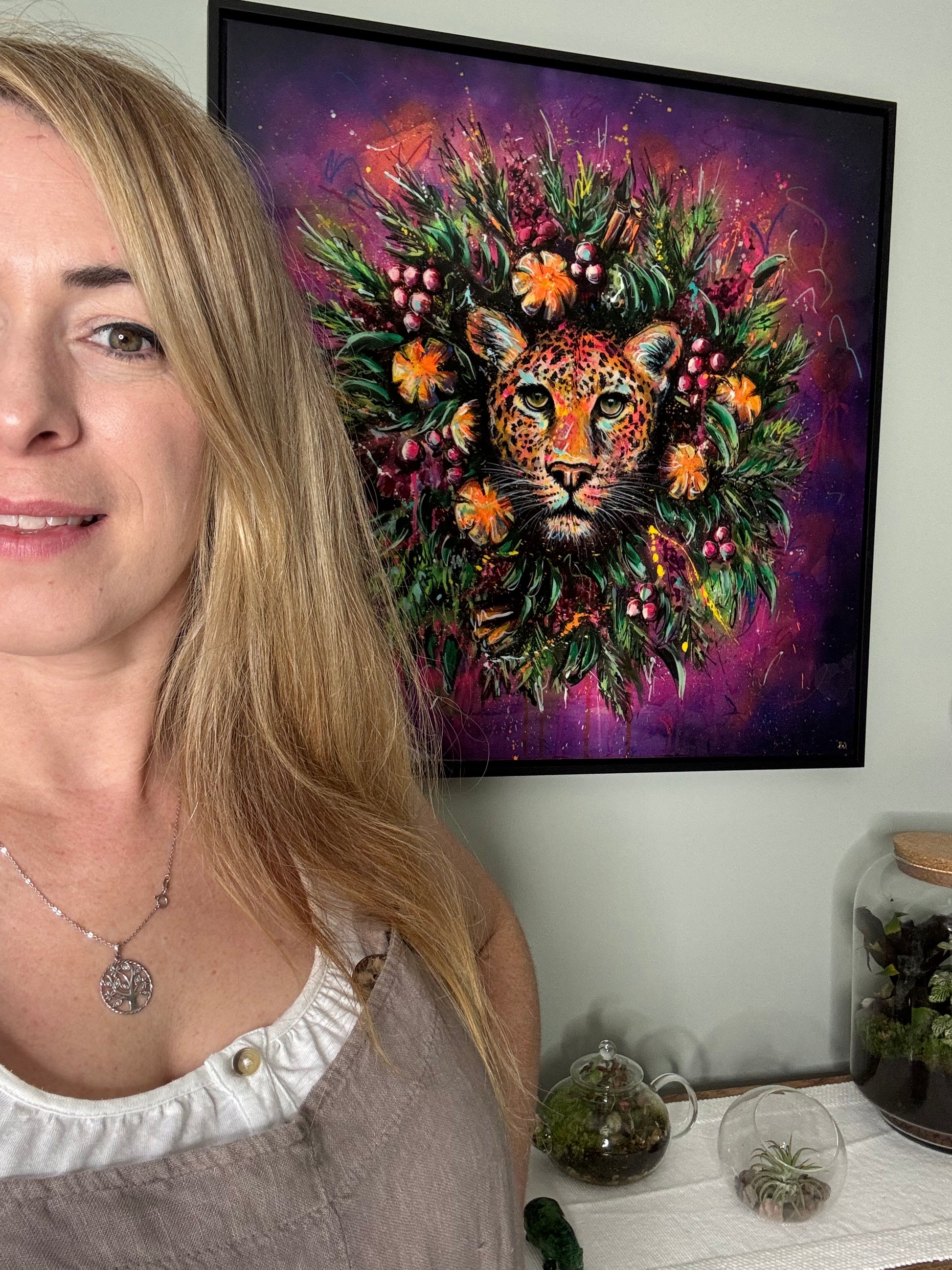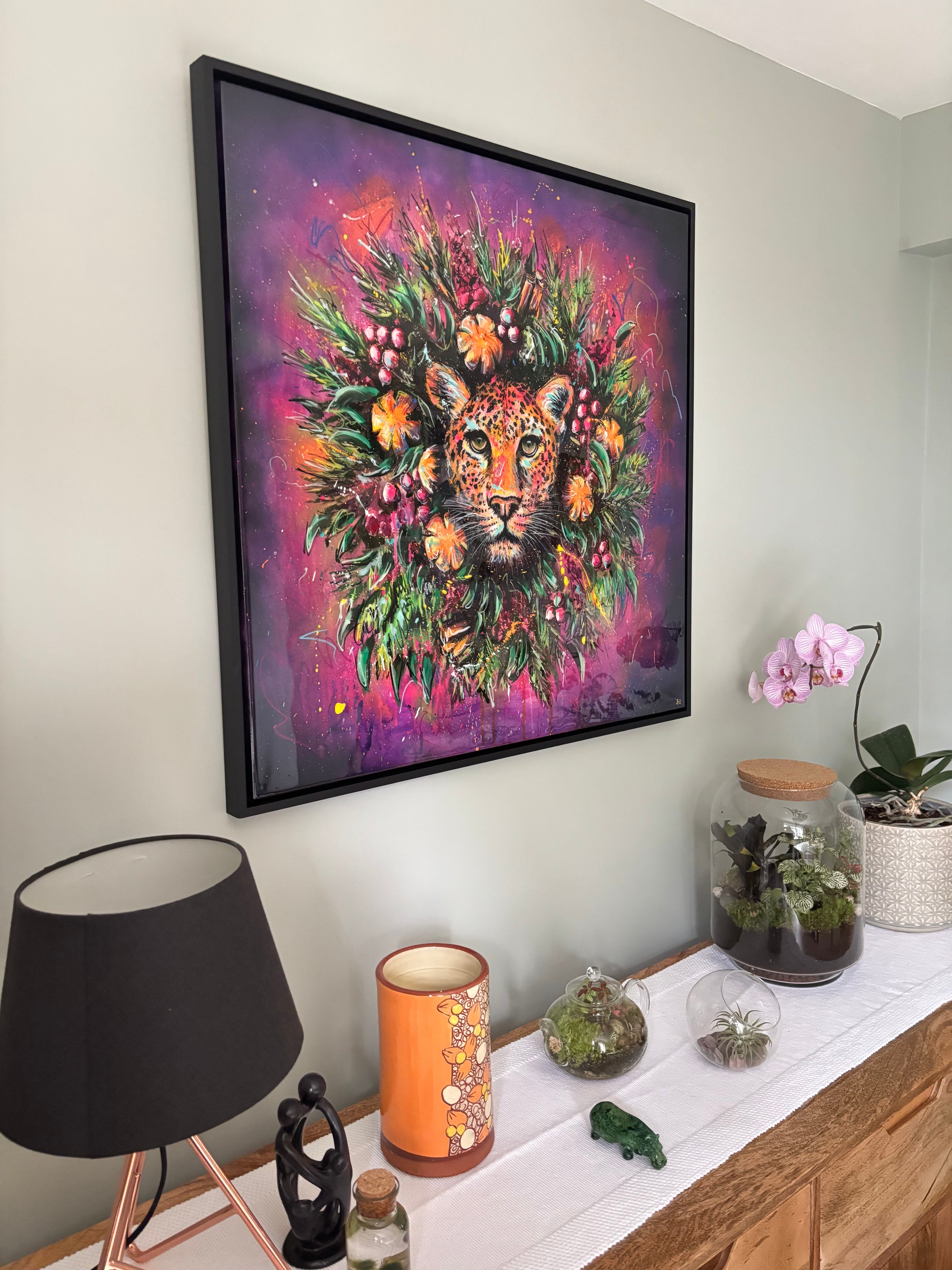 A truly unique piece of resin art, making this vibrant leopard jump right out into your room!! This is a bold, explosion of colour making a massive statement. With splashes, drips, sprays and every other impulsive wiggle in every colour imaginable, the details will keep you captivated for hours. If you love leopards and colour, this is for you!
