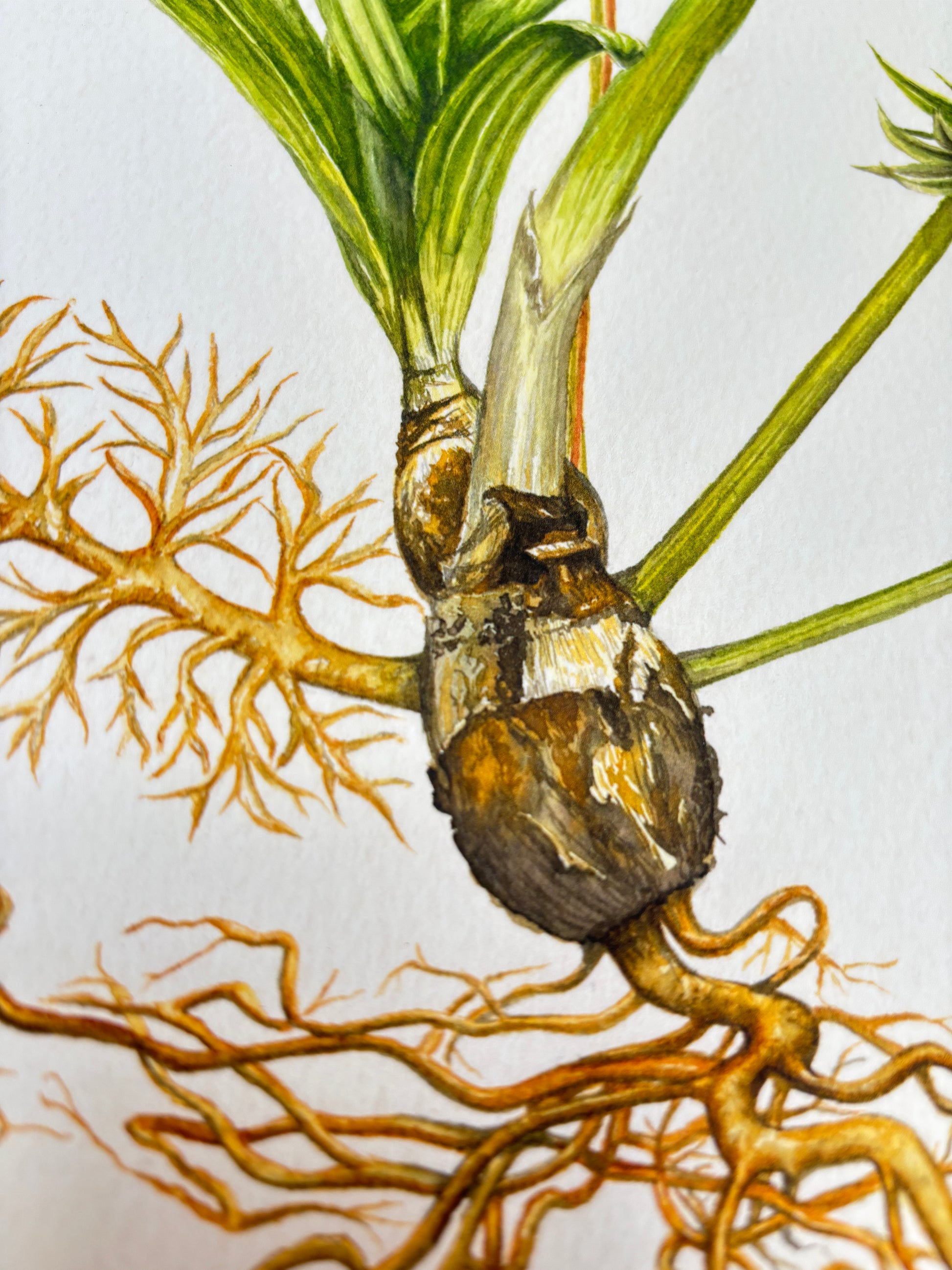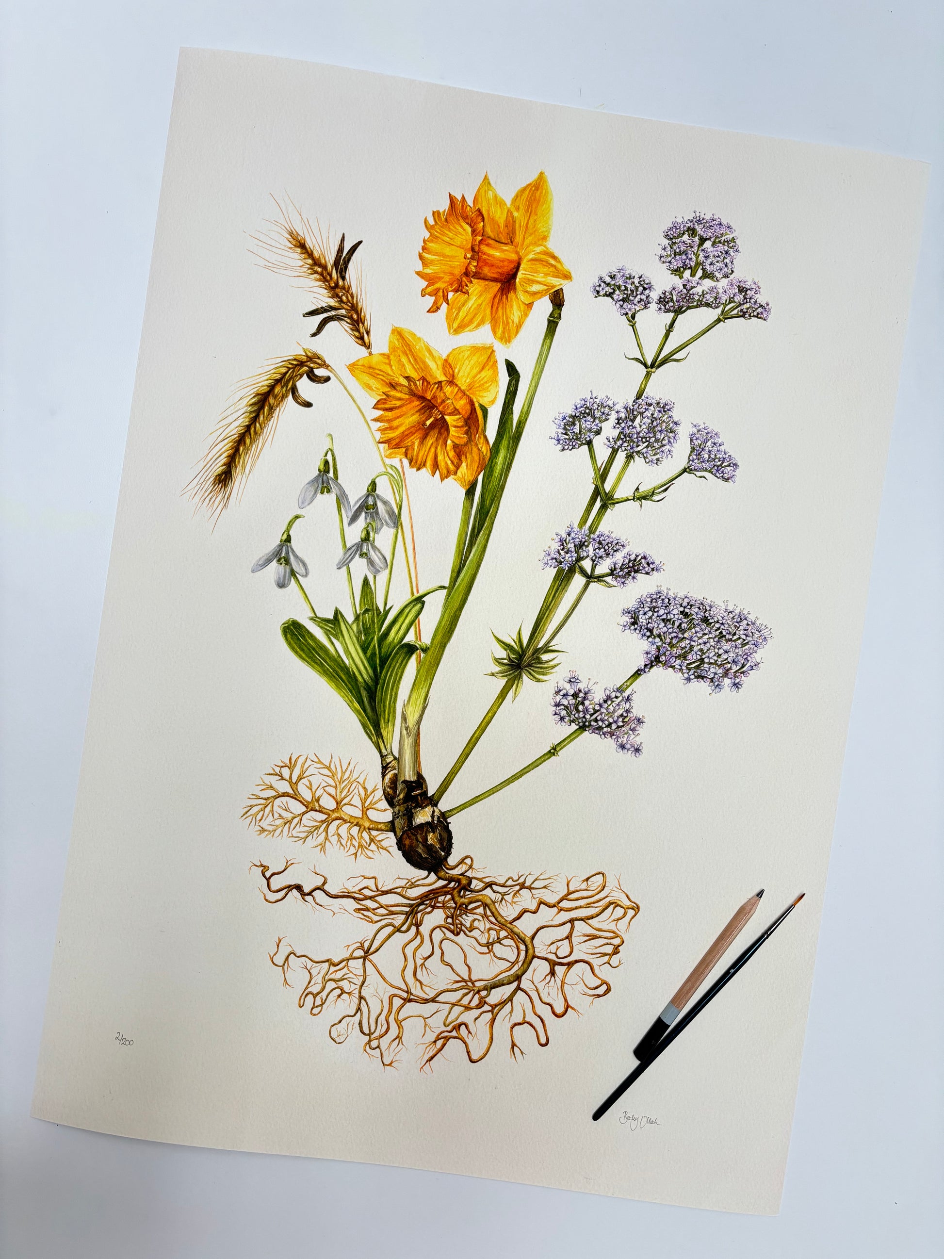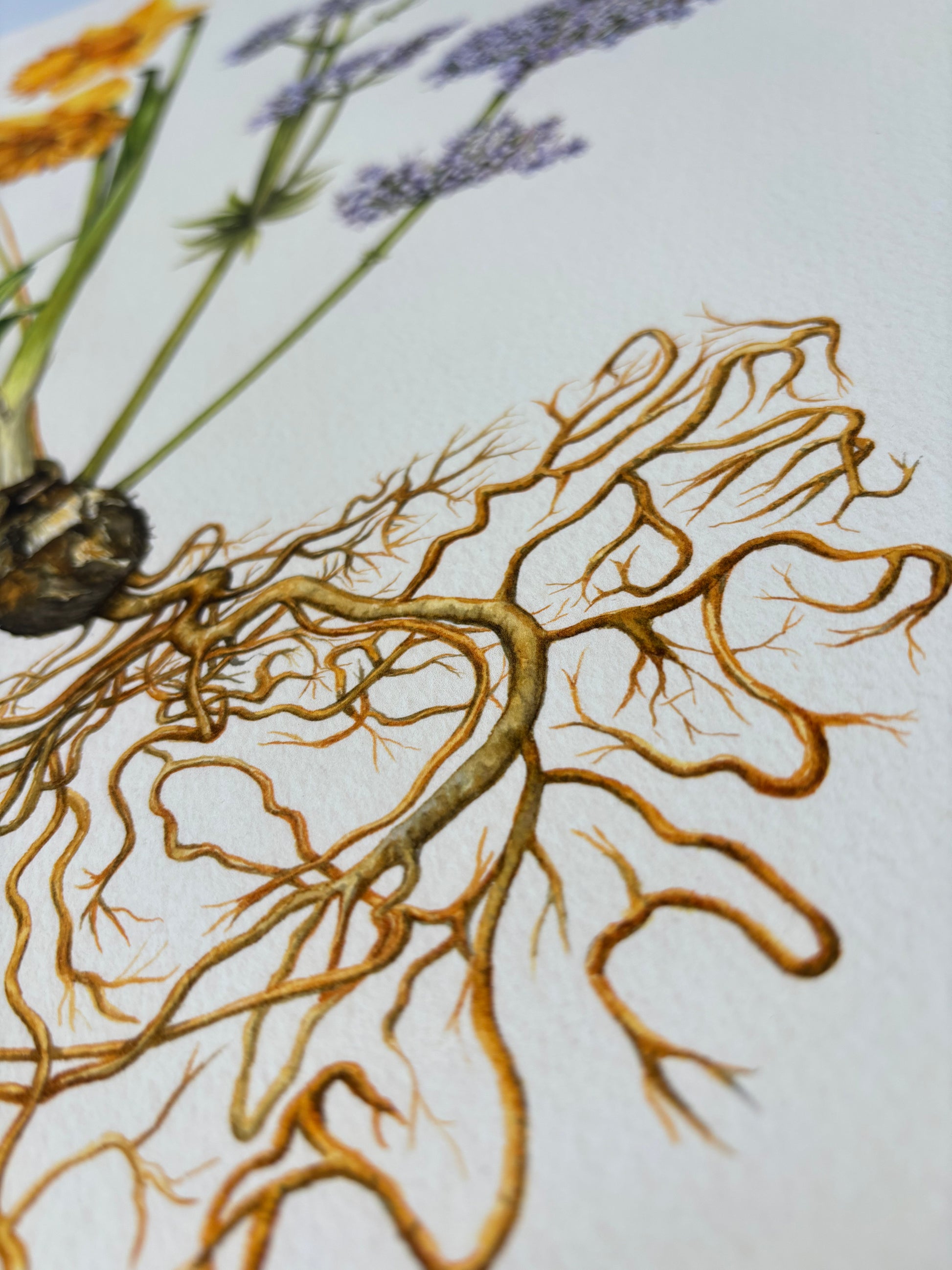 The third organ in this series is the brain, a fundamental organ in the human body, which makes us who we are. In this instance, the roots represent the arterial supply to the cerebrum and the neurological pathways of the cerebellum:
